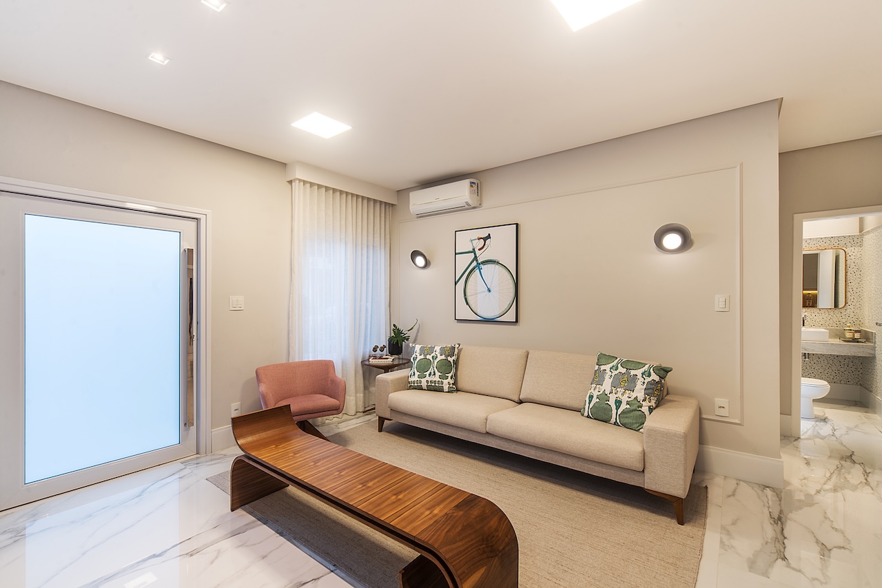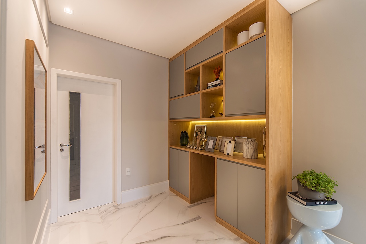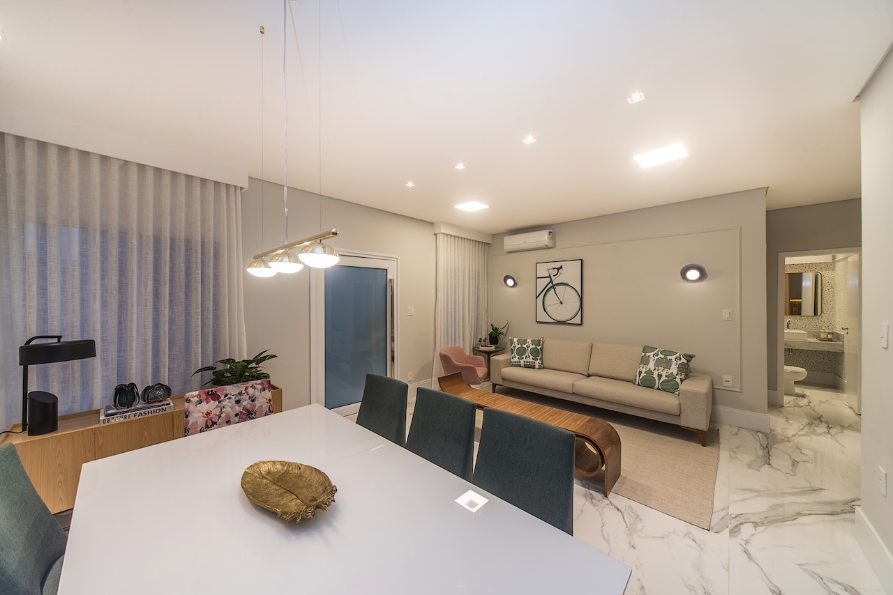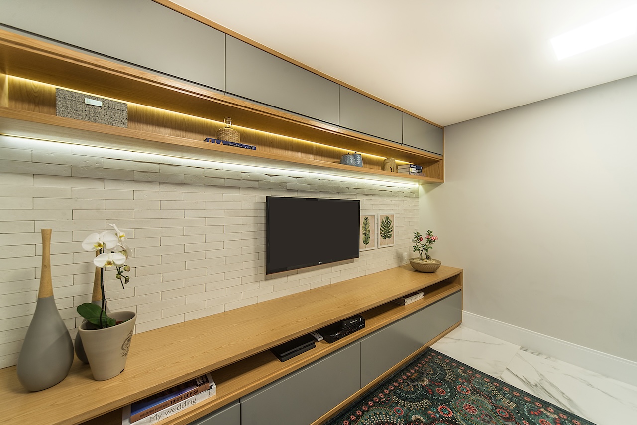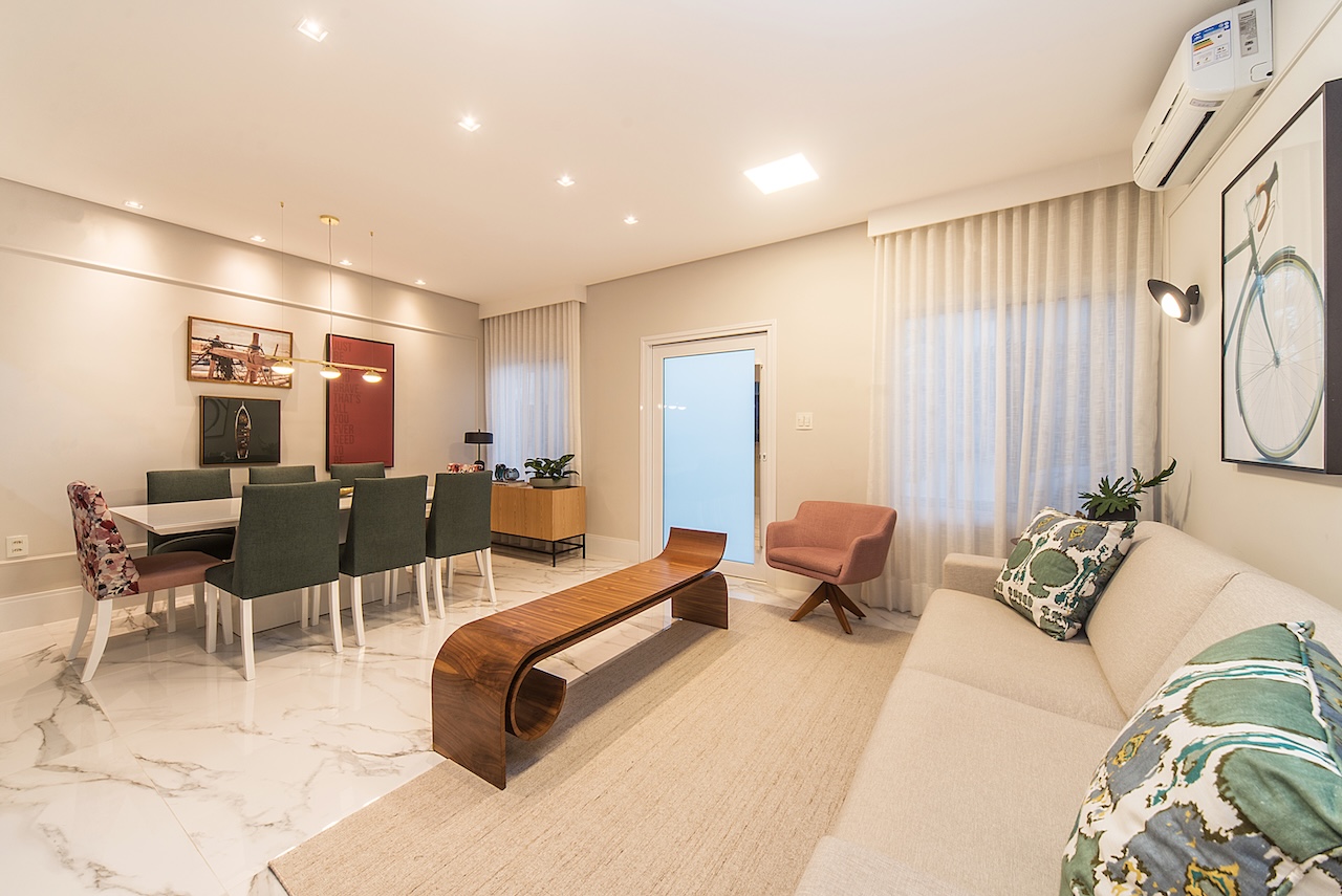 Este projeto merece um antes e depois! Fomos chamados para organizar os ambientes sociais desta casa de uma família querida, grande, e animada. Remodelamos o layout das salas, separamos a saal de jantar e estar da sala de tv. Nas salas de jantar e estar criamos um ambiente mais sofisticado, mas com bossa, com charme, com cores. Criamos um armário multiuso na passagem paa a área íntima da casa para organizar múltiplas funções: guardar documentos da família, as mochilas da escola, adornos e até um bar, com espaço para adega. Na sala de tv, além de muito conforto com o sofá retrátil e tapete, deixamos espaço livre para as crianças se jogarem no chão, ou brincarem: os jogos estão guardados dentro do grande rack.