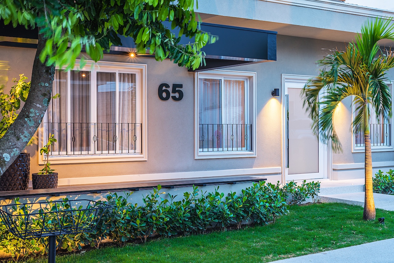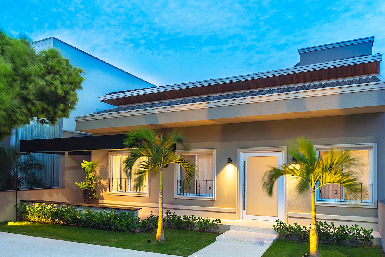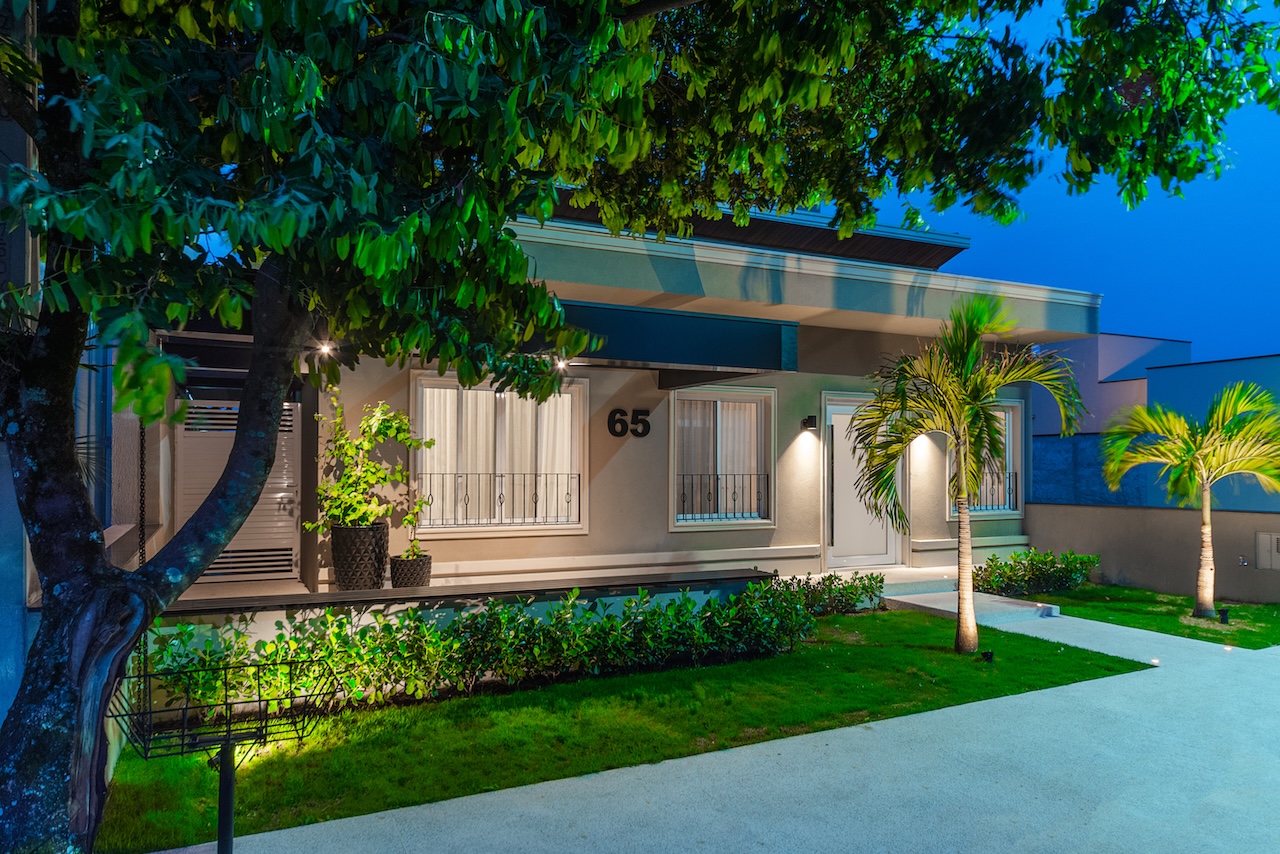 Nem só de interiores vive este escritório e nós podemos provar. Olha o antes e depois desta fachada! É a mesma casa (thais): com a remodelação interna, tivemos que pensar numa nova fachada, que refletisse o novo interior. Equalizamos as janelas, incorporamos molduras e rodapés, criamos um pergolado em alumínio, com um banco, onde a família pode aproveitar a convivência com os vizinhos, e atualizamos todo o paisagismo e a iluminação. O resultado não poderia ser melhor. Nós amamos!